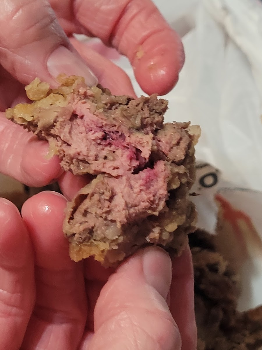 Got the chicken livers and slaw. The livers were excellent but the slaw was soup. Had to dip out with slotted spoon.