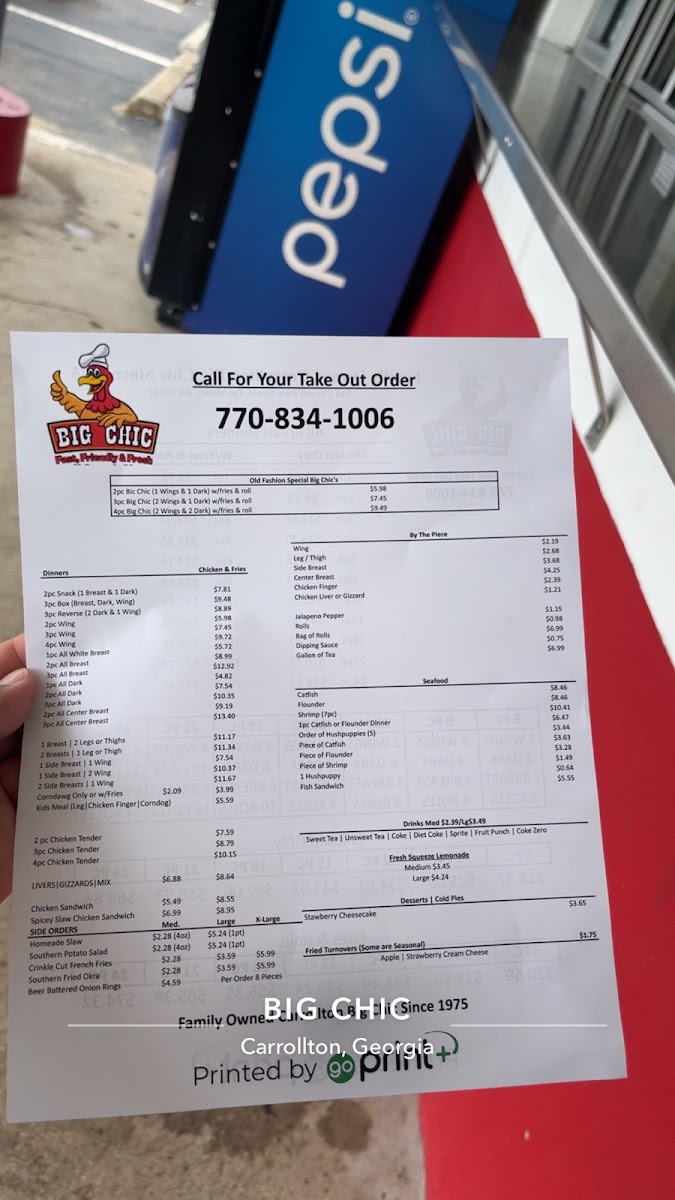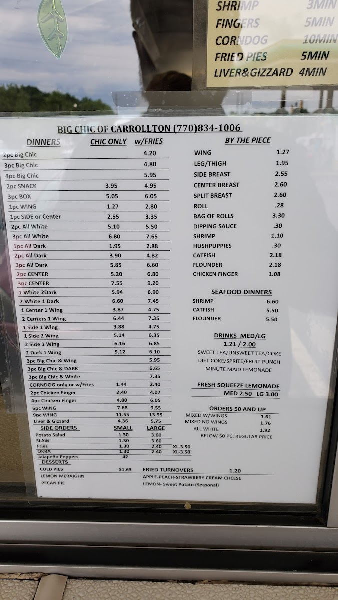 Big Chic offers a straightforward and approachable fast food menu centered around classic Southern fried chicken. The selections serve up familiar comfort with simple, satisfying options that feel right at home for a quick lunch, casual dinner, or anytime you’re craving hearty fried chicken with traditional sides.